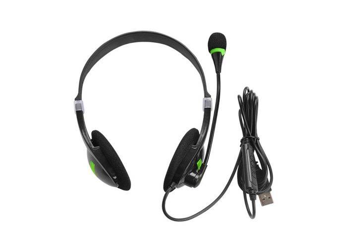 OFFICE Headset med justerbar mikrofon - USB tilslutning - Sort