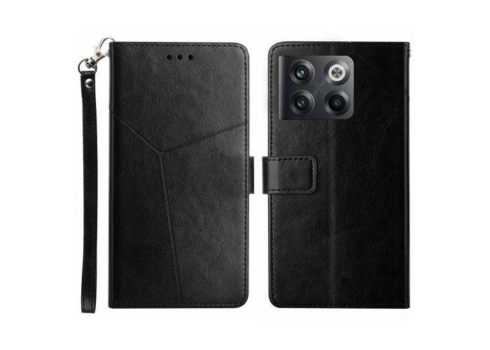 OnePlus 10T 5G - Y-Shape læder cover / pung med aftagelig strop - Sort