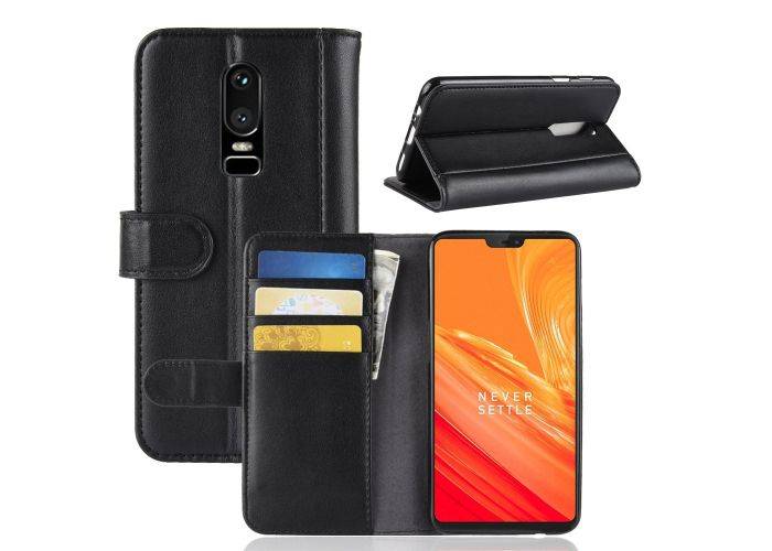 1 x OnePlus 6 - Ægte læder cover / pung – Sort