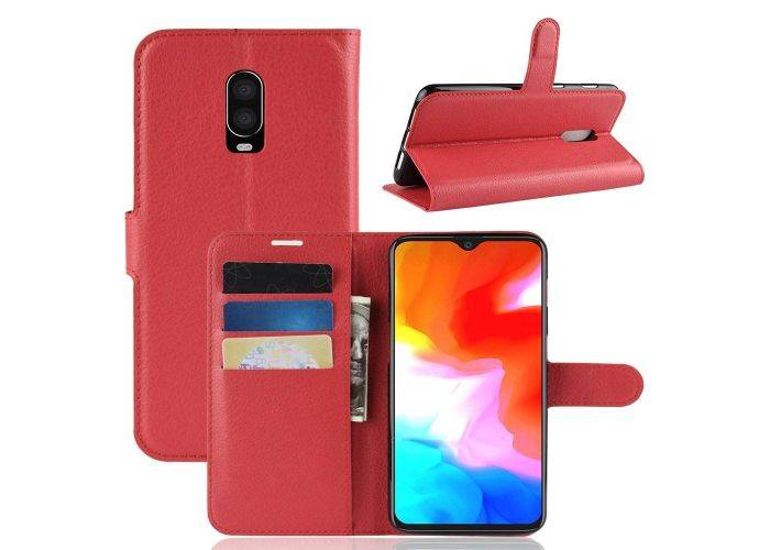 1 x OnePlus 6T - Læder cover / pung - Rød