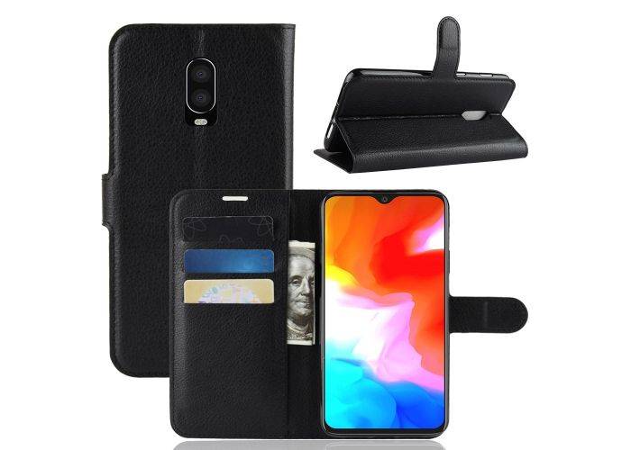 1 x OnePlus 6T - Læder cover / pung - Sort
