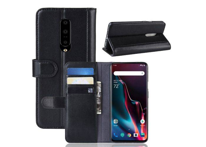 1 x OnePlus 7 Pro - Ægte læder cover / pung - Sort