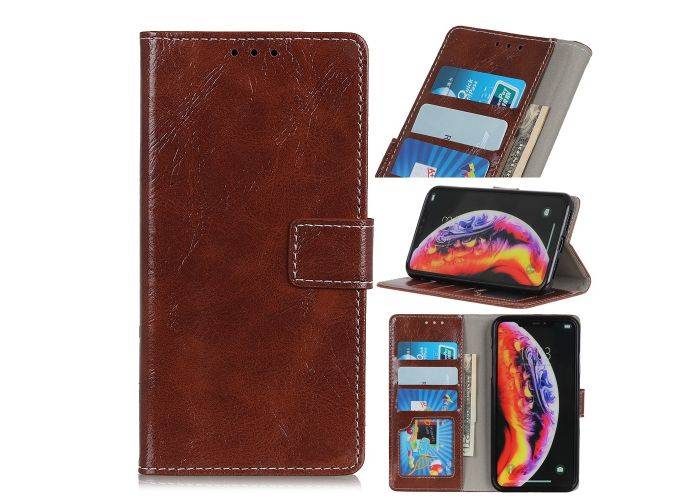 1 x OnePlus 7 Pro - Vintage læder cover / pung - Brun