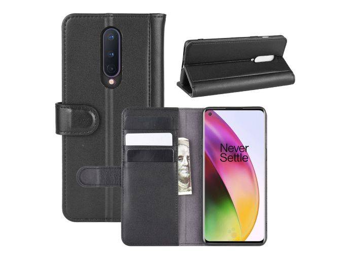 OnePlus 8 - Ægte læder cover / pung - Sort
