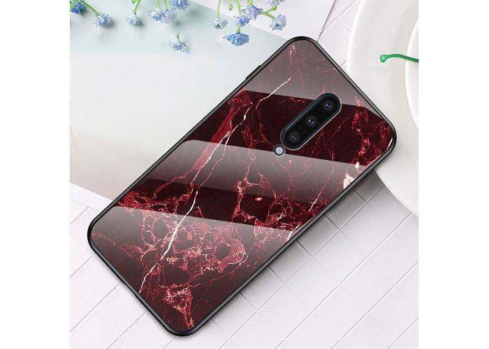 OnePlus 8 - Hard cover med Hærdet glas bagside i Marmor Design - Rød