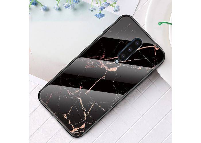 OnePlus 8 - Hard cover med Hærdet glas bagside i Marmor Design - Sort/Guld