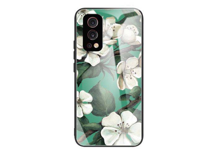 OnePlus Nord 2 5G - Hybrid cover m/ Bagside af hærdet glas - Hvide blomster