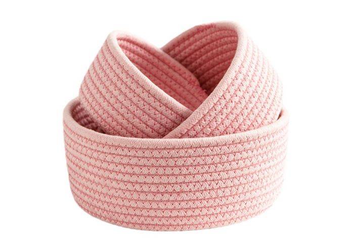 Opbevaringskurv i Bomuldsreb - 17x8cm / 20x9cm / 24x10cm - Sæt med 3 stk. - Pink