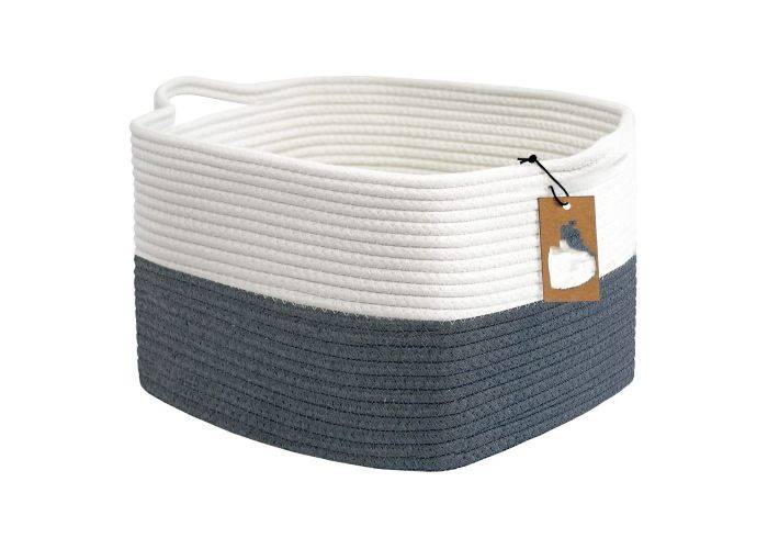 Opbevaringskurv / Vasketøjskurv i Bomuldsreb - 34x28x24cm - Hvid/Mørkegrå