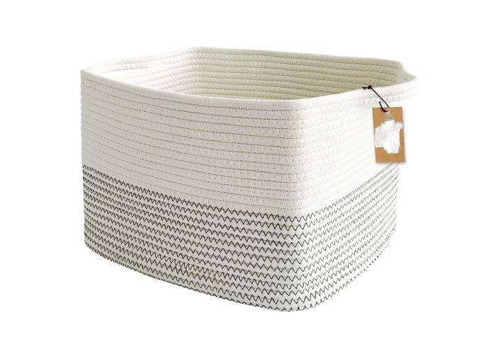 Opbevaringskurv / Vasketøjskurv i Bomuldsreb - 34x28x24cm - Hvid/sort