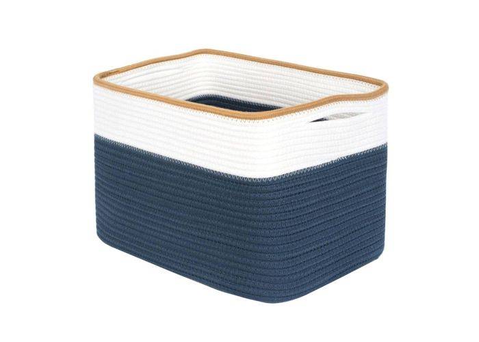 Opbevaringskurv / Vasketøjskurv i Bomuldsreb - 38x25.4x25.4cm - Hvid/Marineblå