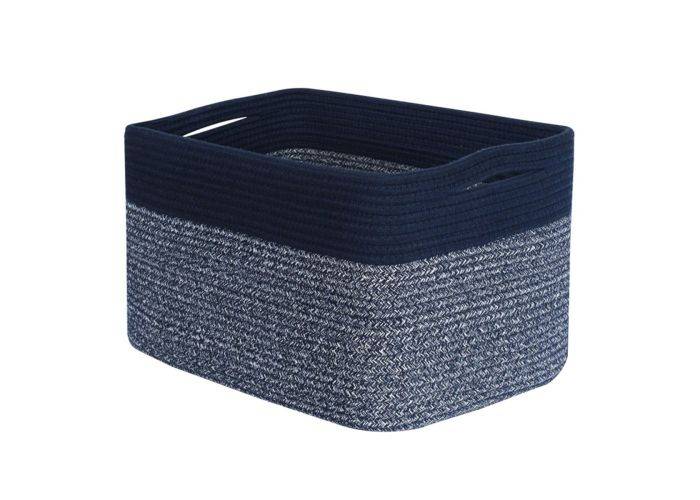 Opbevaringskurv / Vasketøjskurv i Bomuldsreb - 38x25.4x25.4cm - Marineblå/Lys sort