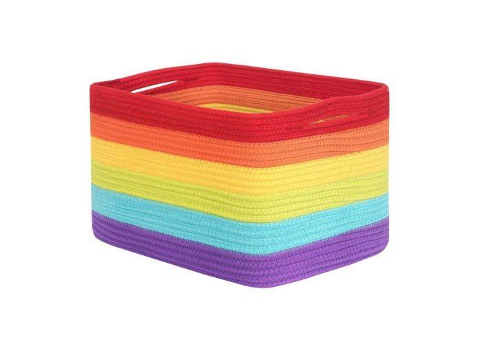 1 x Opbevaringskurv / Vasketøjskurv i Bouldsreb - 38 x 25.4 x 25.4cm - Regnbue