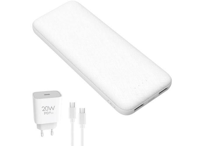 Platinet Powerbank 10000mAh - Inkl 20W USB-C vægoplader & kabel - Hvid