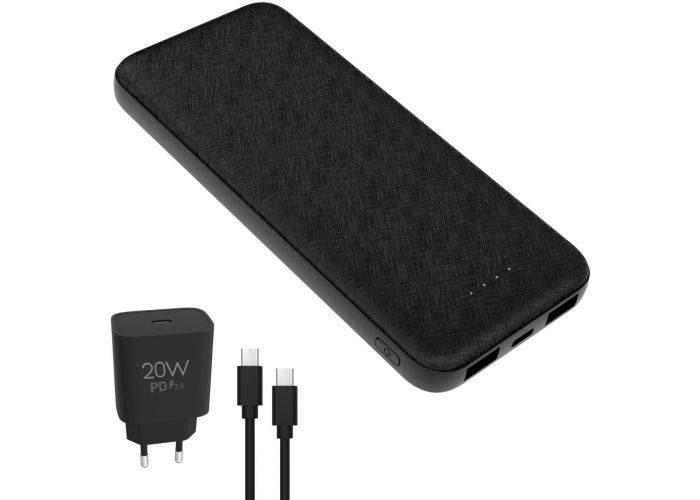 Platinet Powerbank 10000mAh - Inkl 20W USB-C vægoplader & kabel - Sort