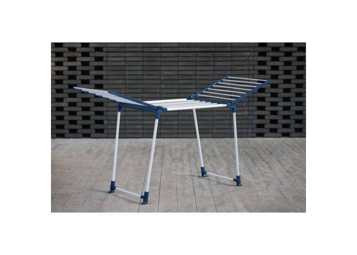 Tørrestativ i stor størrelse med masser af plads til at hænge dit tøj efter vask. Det foldbare design gør det næsten ingenting fylde når det ikke er i brug. Når det er slået op er der ekstra stænger ved fødderme som sørger for bedre stabilitet og holdbarhed. God klassisk løsning til tørring af tøjet.