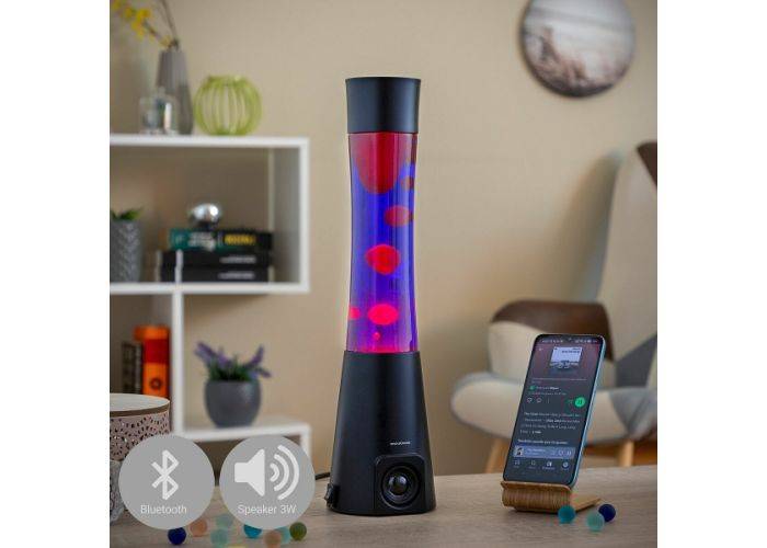 Med denne lavalampe med højttaler (BT 5.0, 3 W) kan du skabe en unik stemning, der vil tryllebinde alle med sine originale og flydende former og farver. Lampen tilsluttes en stikkontakt. Der medfølger 1 E14 R39 30 W pære + udskiftning, og 3,5 mm aux-in tilslutning.