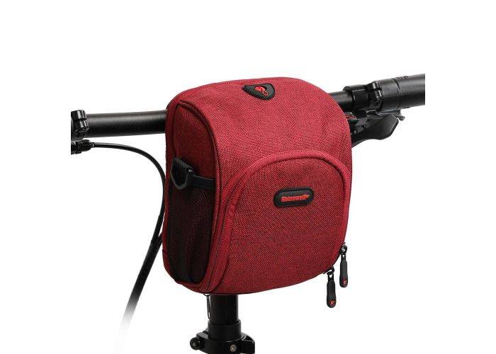 RHINOWALK - Cykeltaske til styret 15 x 8.5 x 19cm inkl. Regnslag & skulderrem - Rød