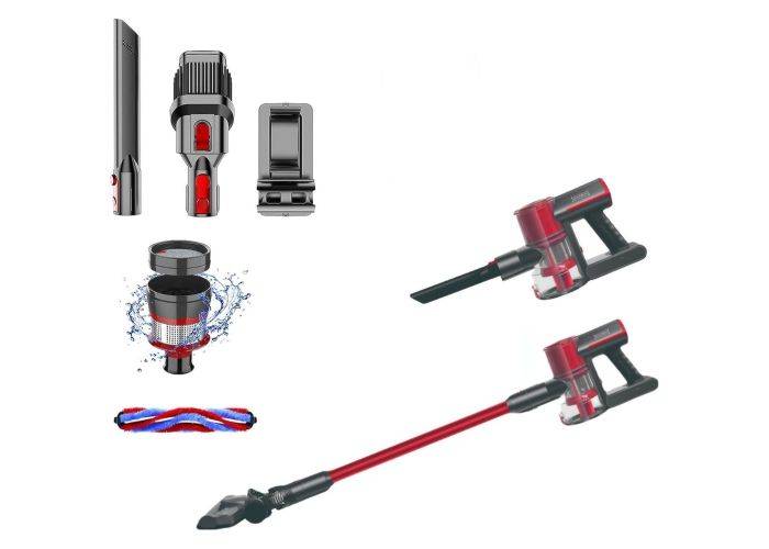 1 x Royalty Line 2-i-1 Trådløs poseløs Støvsuger 2200mAh / 150W - Rød