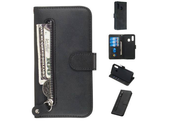 Samsung Galaxy A20E - Læder cover / pung med udvendig lomme - Sort