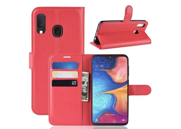 Samsung Galaxy A20E - Læder cover / pung - Rød