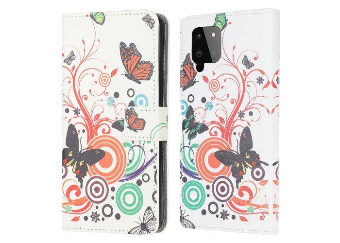 Samsung Galaxy A22 4G - Læder cover / pung - Printet Design - Farverig sommerfugl