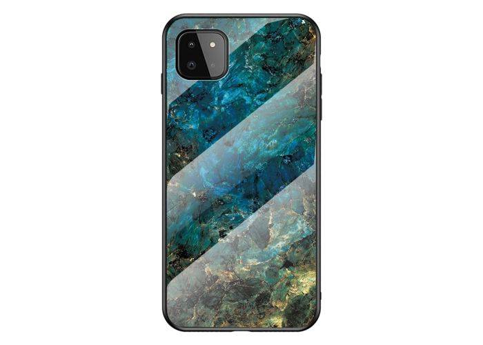 1 x Hybrid cover med bagside af hærdet glas - Marmor Design - Emerald