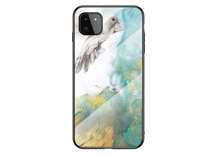 Samsung Galaxy A22 5G - Hybrid cover med bagside af hærdet glas - Marmor Design - Flyvende due