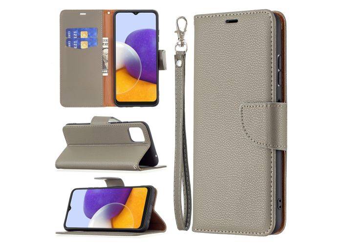 Samsung Galaxy A22 5G - Læder cover / pung - Med aftagelig strop - Grå