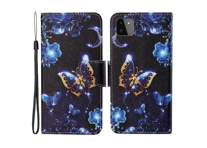 Samsung Galaxy A22 5G - Læder cover / pung - Printet design - Sommerfugl