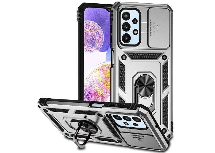 Samsung Galaxy A23 4G / 5G - Armor Slide Hybrid cover med Kickstand - Sølv