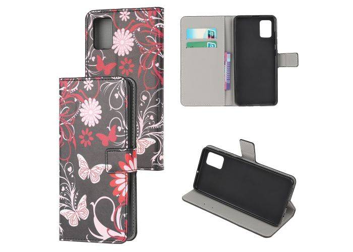Samsung Galaxy A32 5G - Læder cover / pung - printet design - Sommerfugl & blomst