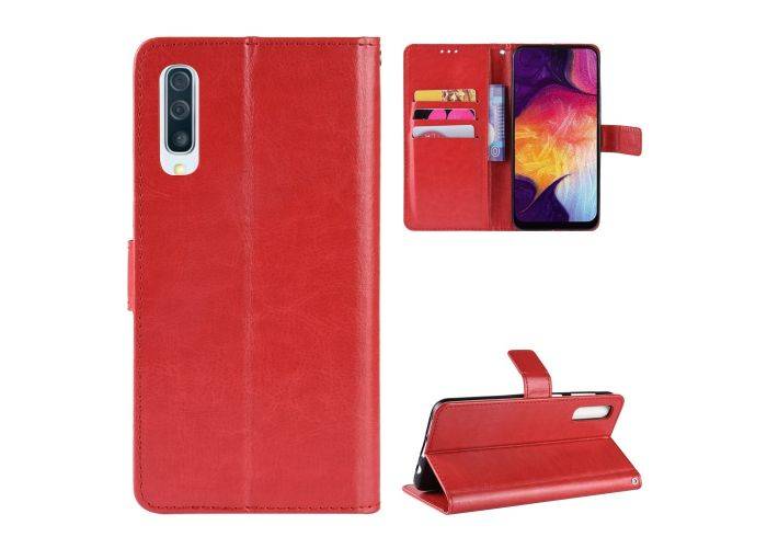 1 x Samsung Galaxy A50 - Læder cover / pung - Rød