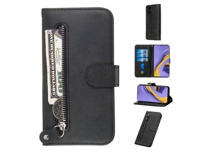 Samsung Galaxy A51 - Læder cover / pung m/udvendig lomme - Sort