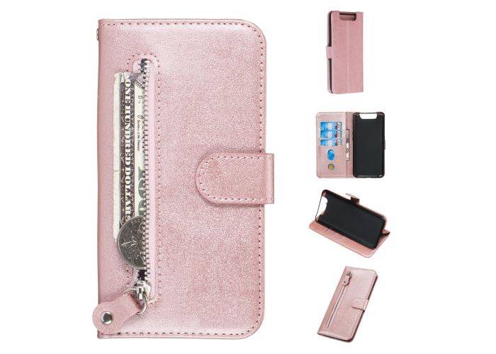 1 x Læder cover / pung med udvendig lomme - Rosa guld