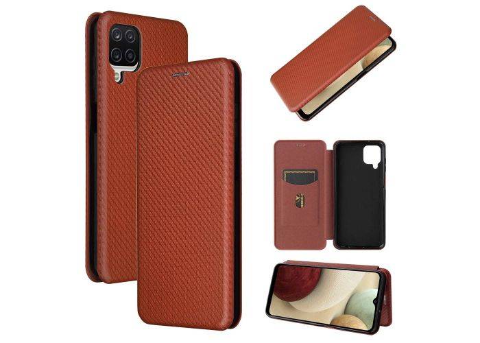 Samsung Galaxy M12 / A12 - Cover i børstet design med aftagelig kickstand - Brun