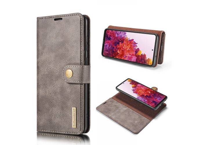 Samsung Galaxy S20 FE / S20 FE 5G - DG MING 2-i-1 ægte læder cover / pung - aftagelig holder - Grå