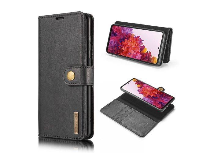 Samsung Galaxy S20 FE / S20 FE 5G - DG MING 2-i-1 ægte læder cover / pung - aftagelig holder - Sort