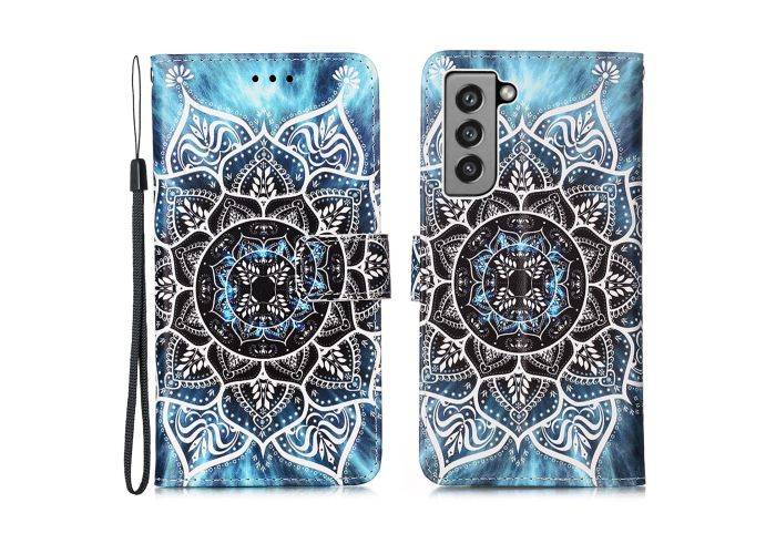 Samsung Galaxy S21 FE 5G - Læder cover / pung - printet design - Mandala blomst