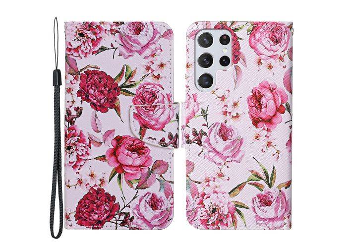 Samsung Galaxy S22 Ultra 5G - Læder cover / pung - Printet Design - Peony