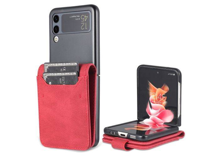 Samsung Galaxy Z Flip4 5G - AZNS læder cover med kortholdere - Rød