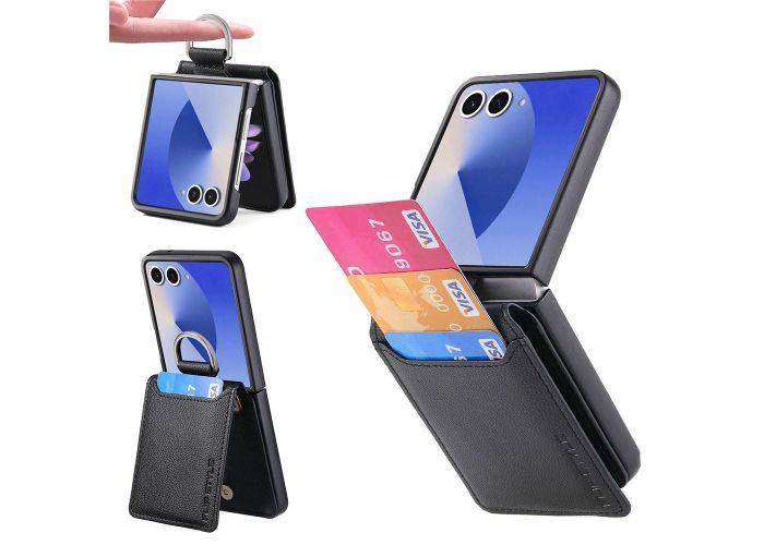 Samsung Galaxy Z Flip7 - Læder Hybrid cover med kortholder - Sort