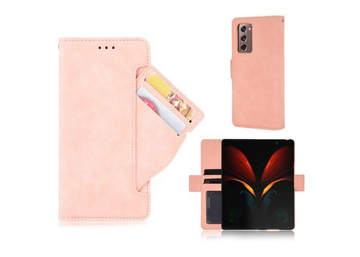 Samsung Galaxy Z Fold 2 - Læder cover / pung med aftagelig udvendig kortholder - Rosa guld
