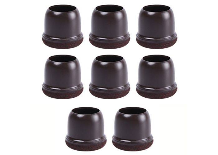 Silikonebeskyttere med filt til Stoleben / Møbler - Runde Str. M - Sæt med 8 stk - Kaffe