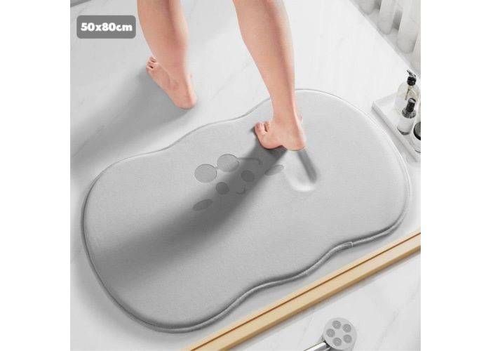 Skridsikker Badeværelsesmåtte / Gulvmåtte med memoryskum - 80 x 50 cm - Grå