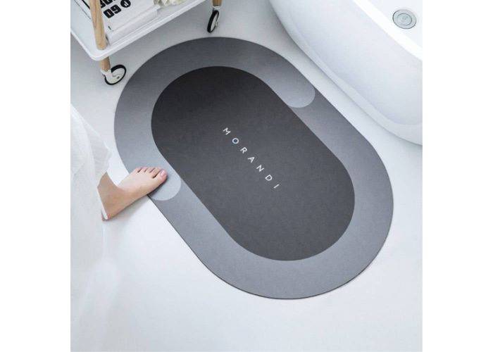 1 x Oval Badeværelsesmåtte 70 x 45 cm - Hurtigtørrende - Non-Slip - Grå