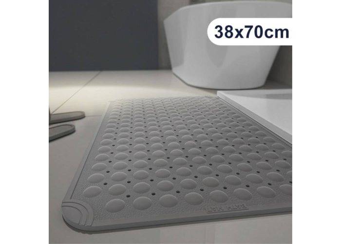 Flot og smart badeværelsesmåtte til badeværelse eller brusekabinen, materialet er lavet af TPE gummi og er yderst blødt og behageligt at træde på og er fleksibelt og stærkt. Der er sugekopper så den er skridsikker, og der er lavet drænhuller så vandet nemt kan løbe væk. Det er muligt at klippe eller skære i måtten hvis den skal tilpasses i størrelsen.