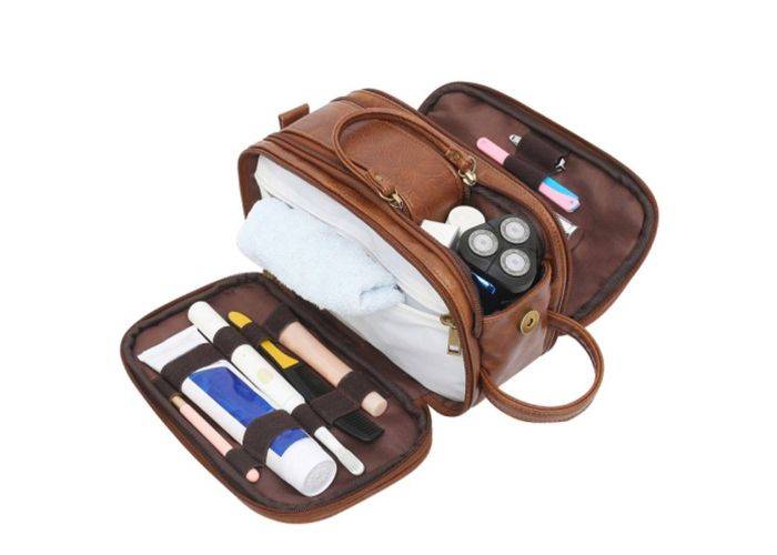 Skøn toilettaske i lækkert kunstlæder med god plads til organisering af dine toiletartikler. Med smarte elastikstropper og med indvendige lommer kan du nemt fastgøre dine ting oog gøre det meget overskueligt med organiseringen