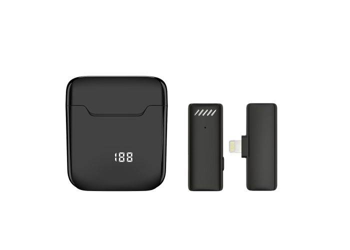 Trådløs Lavalier mikrofon med Clip - Med Lightning stik og opladerbox - Sort