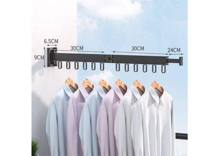Super smart vægmonteret Tøjstativ, stativet er flesksibelt og kan roteres 360 grader og trækkes ud efter ønske. Hvert led har 6 kroge til ophængning af tøj og for enden og er udtrækkelig og kan bruges til ophængning af endnu mere tøj. Foldes nemt sammen på væggen så den fylder minimalt når den ikke er i brug. Kan bruges både i hjemmet og på altanen eller andre steder.
